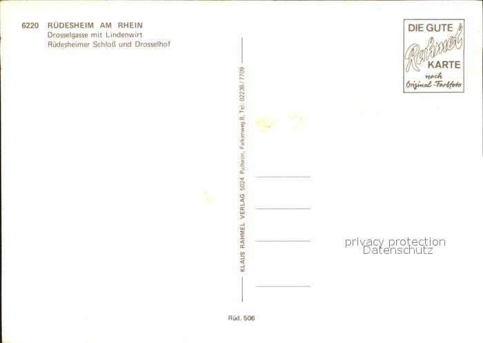 72449349 Ruedesheim Rhein Drosselgasse mit Lindenwirt Ruedesheimer Schloss und Drosselhof postalisch nicht gelaufen Erhaltung siehe scans KatCode: 11110006439013