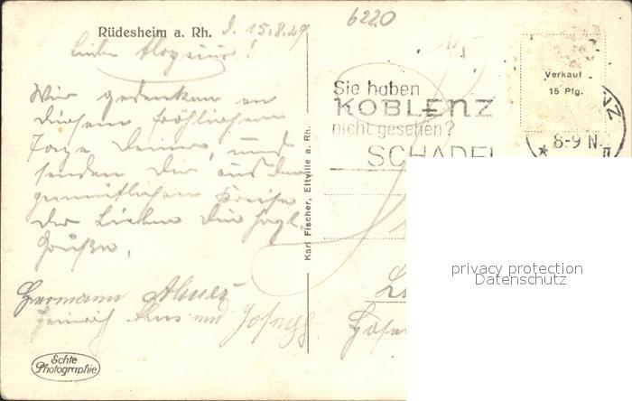 72094280 alte Postkarte Ruedesheim Rhein Drosselgasse Niederwald Ehrenfels postalisch gelaufen Erhaltung siehe scans KatCode: 11110006439013