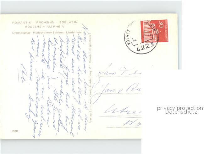 72259049 alte Postkarte Ruedesheim Rhein Drosselgasse Ruedesheimer Schloss Lindenwirt postalisch gelaufen Erhaltung siehe scans KatCode: 11110006439013