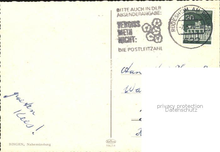 72470047 alte Postkarte Ruedesheim Rhein Fliegeraufnahme postalisch gelaufen Erhaltung siehe scans KatCode: 11110006439013
