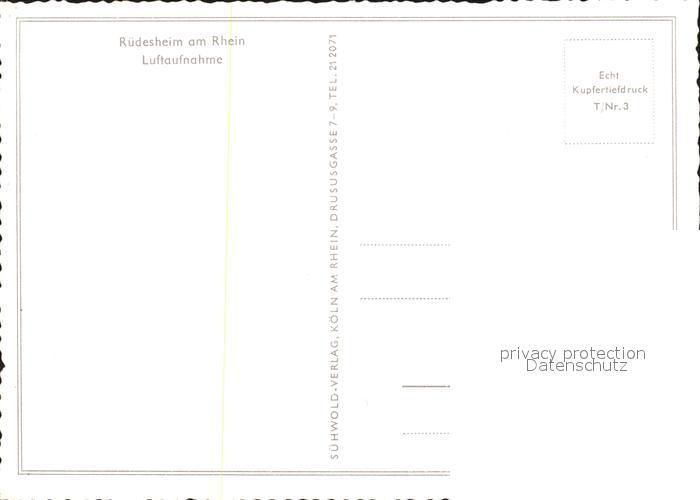 71983782 Ruedesheim Rhein Fliegeraufnahme Kupfertiefdruck postalisch nicht gelaufen Erhaltung siehe scans KatCode: 11110006439013