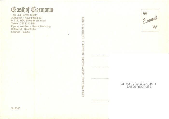 72529580 Ruedesheim Rhein Gasthaus Germania postalisch nicht gelaufen Erhaltung siehe scans KatCode: 11110006439013