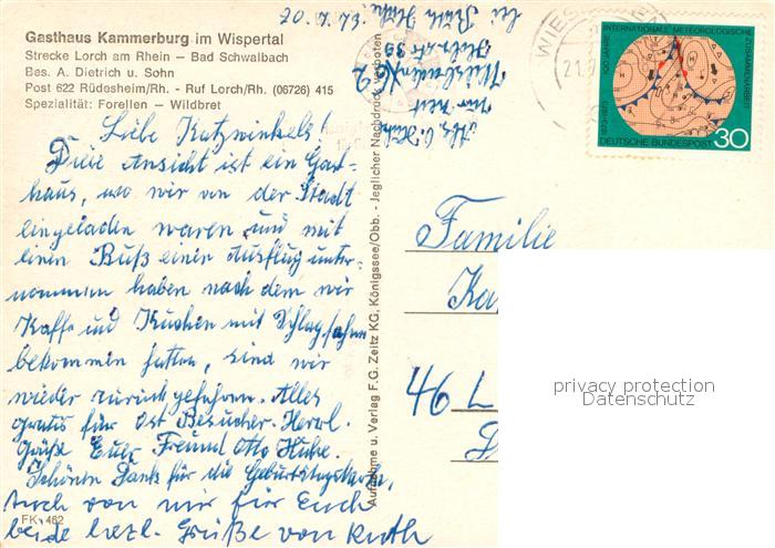 73649275 alte Postkarte Ruedesheim Rhein Gasthaus Kammerburg im Wispertal Garten Terrasse postalisch gelaufen Erhaltung siehe scans [FriedD77] KatCode: 11110006439013