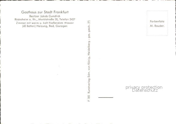72283585 Ruedesheim Rhein Gasthaus zur Stadt Frankfurt Fachwerkhaus postalisch nicht gelaufen Erhaltung siehe scans KatCode: 11110006439013