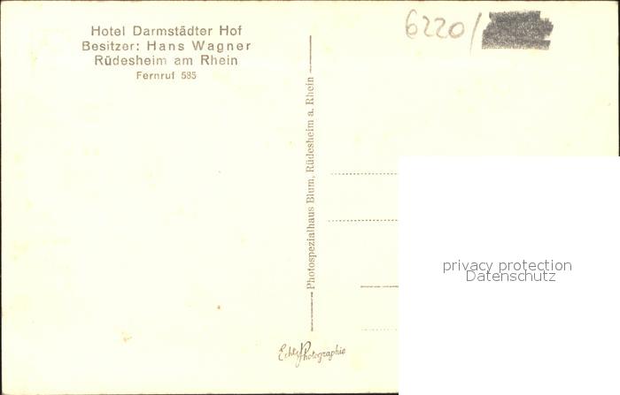 31910350 Ruedesheim Rhein Hotel Darmstaedter Hof NZ3 postalisch nicht gelaufen Erhaltung siehe scans KatCode: 11110006439013