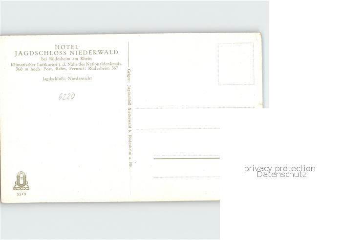 72134537 Ruedesheim Rhein Hotel Jagdschloss Niederwald postalisch nicht gelaufen Erhaltung siehe scans KatCode: 11110006439013