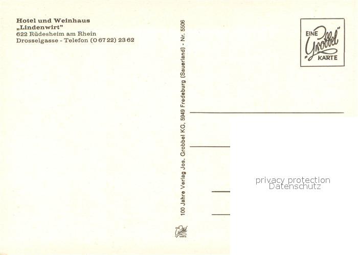 73641645 Ruedesheim Rhein Hotel und Weinhaus Lindenwirt Eingangsbereich postalisch nicht gelaufen Erhaltung siehe scans [FriedD77] KatCode: 11110006439013