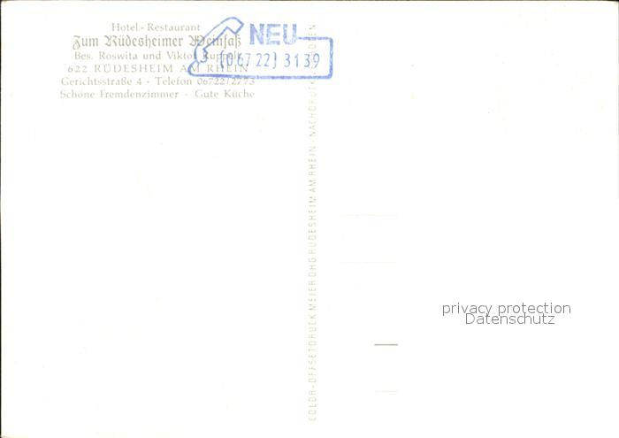 72009127 Ruedesheim Rhein Hotel Zum Ruedesheimer Weinfass Bar Gaststube postalisch nicht gelaufen Erhaltung siehe scans KatCode: 11110006439013