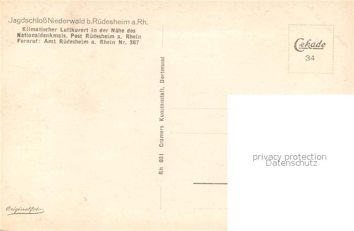43494581 Ruedesheim Rhein Jagdschloss Niederwald postalisch nicht gelaufen Erhaltung siehe scans [KathaD81] KatCode: 11110006439013