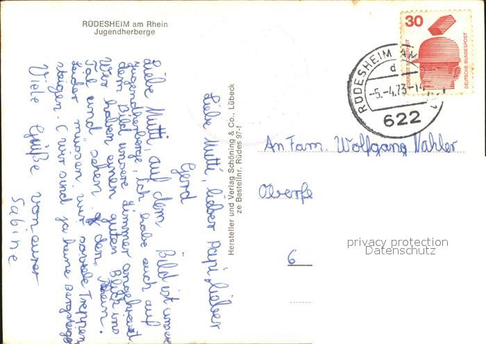 72580422 alte Postkarte Ruedesheim Rhein Jugendherberge postalisch gelaufen Erhaltung siehe scans [KathaD79] KatCode: 11110006439013