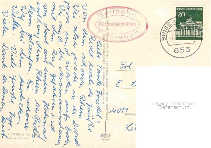 72667797 alte Postkarte Ruedesheim Rhein Kabinenseilbahn postalisch gelaufen Erhaltung siehe scans [AndreD76] KatCode: 11110006439013