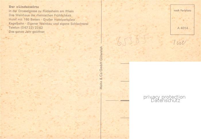 73107338 Ruedesheim Rhein Lindenwirt postalisch nicht gelaufen Erhaltung siehe scans [NatalD47] KatCode: 11110006439013