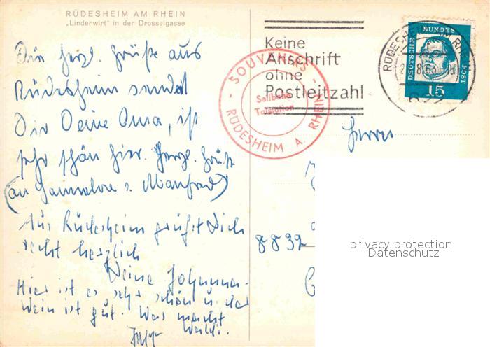 72759834 alte Postkarte Ruedesheim Rhein Lindenwirt Drosselgasse postalisch gelaufen Erhaltung siehe scans [KathaD81] KatCode: 11110006439013