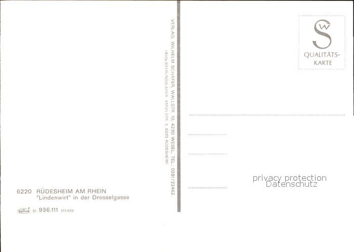 72557165 Ruedesheim Rhein Lindenwirt Drosselgasse postalisch nicht gelaufen Erhaltung siehe scans [KathaD79] KatCode: 11110006439013