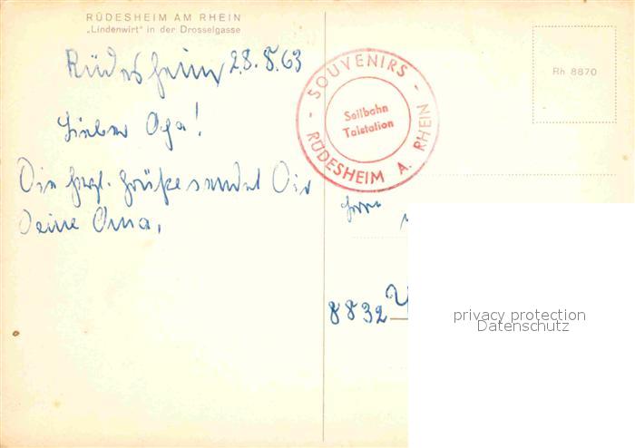 72764081 alte Postkarte Ruedesheim Rhein Lindenwirt in der Drosselgasse postalisch gelaufen Erhaltung siehe scans [FriedD77] KatCode: 11110006439013