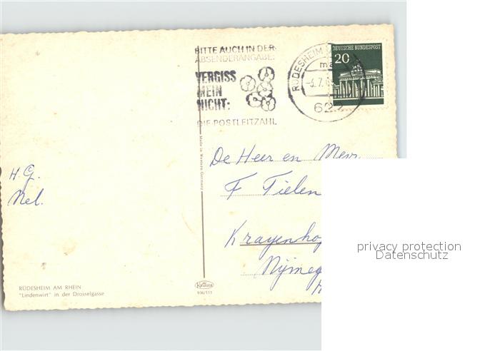 72399257 alte Postkarte Ruedesheim Rhein Lindenwirt in der Drosselgasse postalisch gelaufen Erhaltung siehe scans KatCode: 11110006439013
