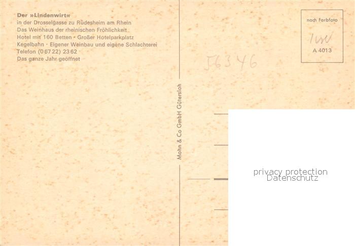 73108149 Ruedesheim Rhein Lindenwirt postalisch nicht gelaufen Erhaltung siehe scans [NatalD47] KatCode: 11110006439013