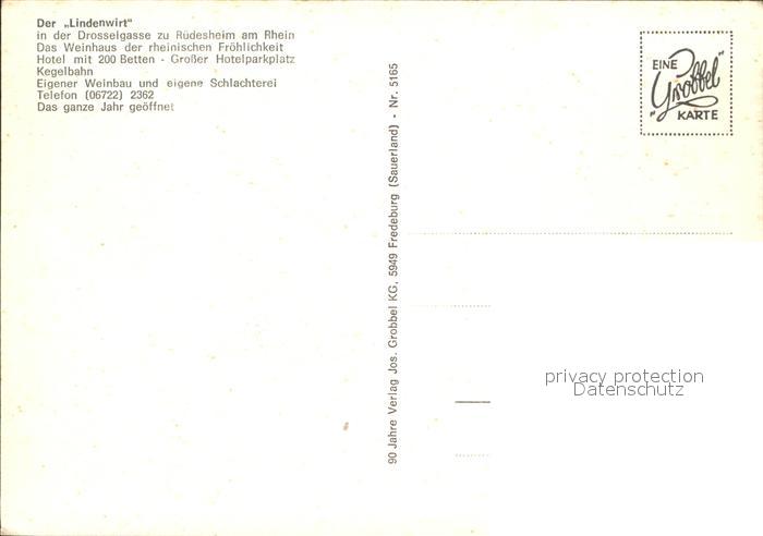 72008608 Ruedesheim Rhein Lindenwirtshaus in der Drosselgasse postalisch nicht gelaufen Erhaltung siehe scans KatCode: 11110006439013
