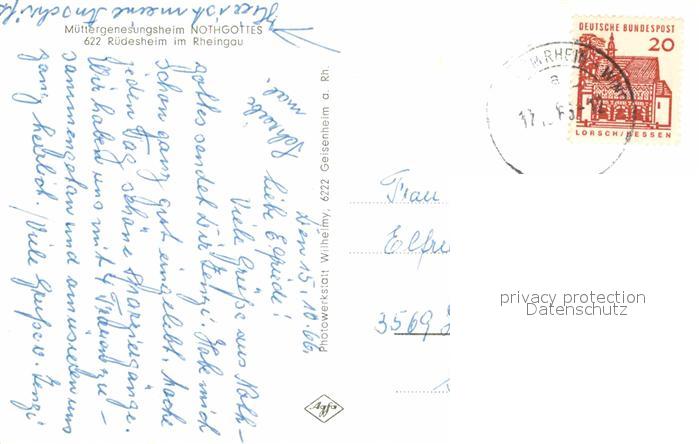 72849761 alte Postkarte Ruedesheim Rhein Muettergenesungsheim Nothgottes postalisch gelaufen Erhaltung siehe scans [FriedD77] KatCode: 11110006439013