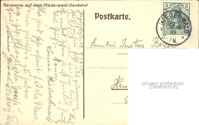 72094299 alte Postkarte Ruedesheim Rhein National- Denkmal Niederwald postalisch gelaufen Erhaltung siehe scans KatCode: 11110006439013