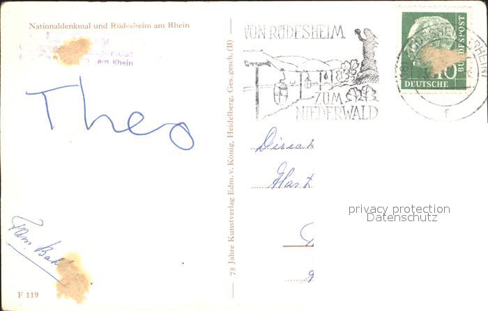 72311233 alte Postkarte Ruedesheim Rhein Nationaldenkmal postalisch gelaufen Erhaltung siehe scans KatCode: 11110006439013