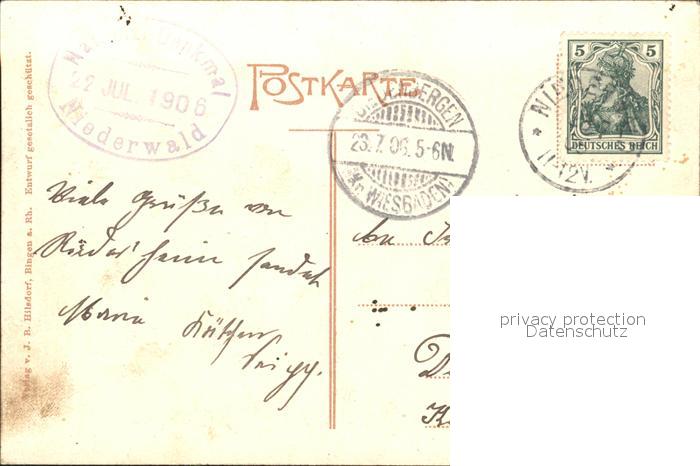 72094316 alte Postkarte Ruedesheim Rhein Nationaldenkmal Niederwald postalisch gelaufen Erhaltung siehe scans KatCode: 11110006439013