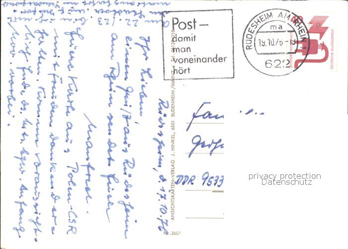 72382034 alte Postkarte Ruedesheim Rhein Niederwald-Denkmal Loreley postalisch gelaufen Erhaltung siehe scans KatCode: 11110006439013