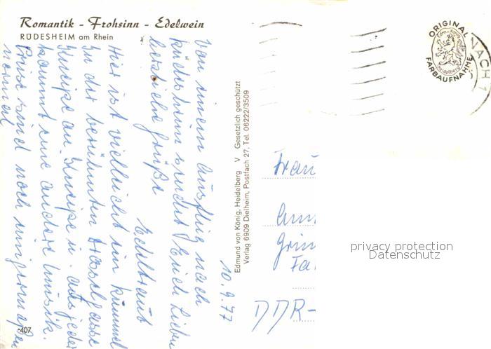 72814458 alte Postkarte Ruedesheim Rhein Niederwald Denkmal Rheinstrasse Drosselgasse Burg Rheinstein Drosselhof Lindenwirt postalisch gelaufen Erhaltung siehe scans [WerneD78] KatCode: 11110006439013
