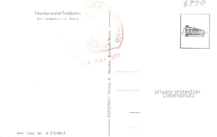 43362432 Ruedesheim Rhein Niederwald Seilbahn postalisch nicht gelaufen Erhaltung siehe scans [WerneD78] KatCode: 11110006439013