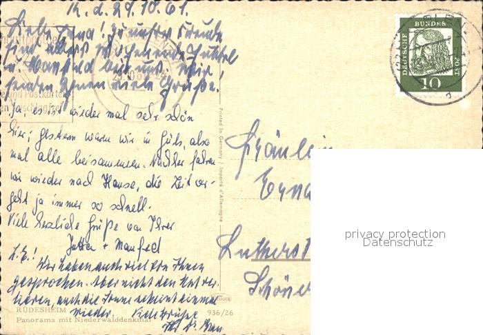 72523175 alte Postkarte Ruedesheim Rhein Niederwalddenkmal postalisch gelaufen Erhaltung siehe scans KatCode: 11110006439013
