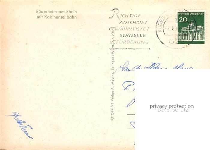 72935695 alte Postkarte Ruedesheim Rhein Panorama Blick ueber den Rhein Kabinenseilbahn postalisch gelaufen Erhaltung siehe scans [FriedD77] KatCode: 11110006439013