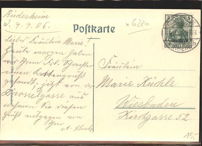 41511600 alte Postkarte Ruedesheim Rhein Restaurant von Joh.Mueller in der Drosselgasse postalisch gelaufen Erhaltung siehe scans KatCode: 11110006439013