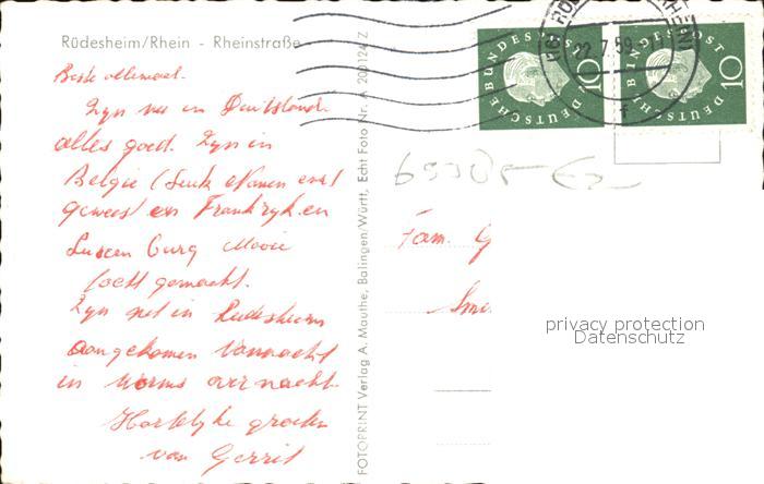 72406369 alte Postkarte Ruedesheim Rhein Rheinstrasse postalisch gelaufen Erhaltung siehe scans KatCode: 11110006439013