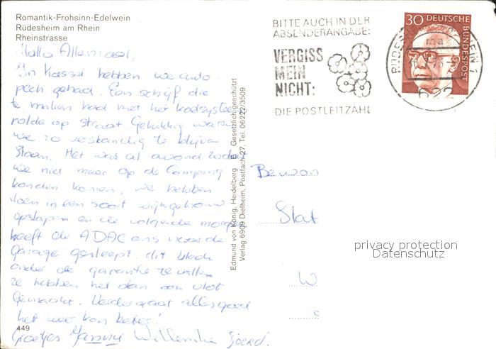 alte Postkarte Ruedesheim Rhein Rheinstrasse postalisch gelaufen Erhaltung siehe scans