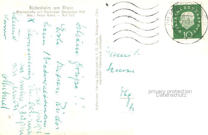 73160009 alte Postkarte Ruedesheim Rhein Rheinstrasse mit Parkhotel Deutscher-Hof postalisch gelaufen Erhaltung siehe scans [LiesaD40] KatCode: 11110006439013