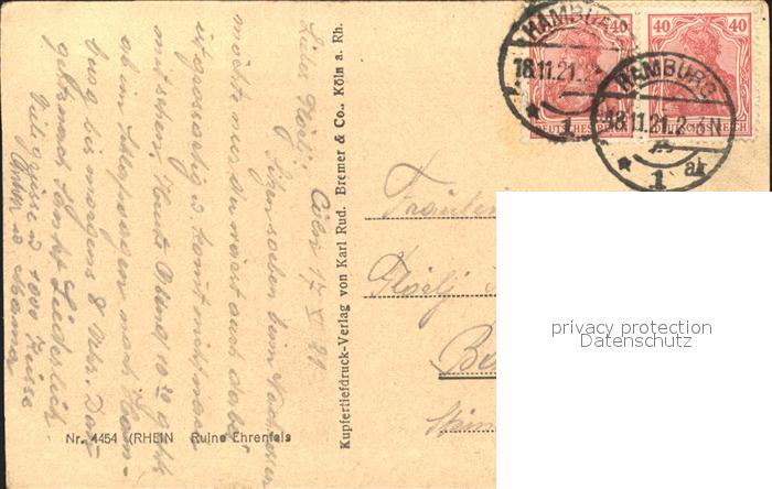 71913523 alte Postkarte Ruedesheim Rhein Ruine Ehrenfels postalisch gelaufen Erhaltung siehe scans KatCode: 11110006439013