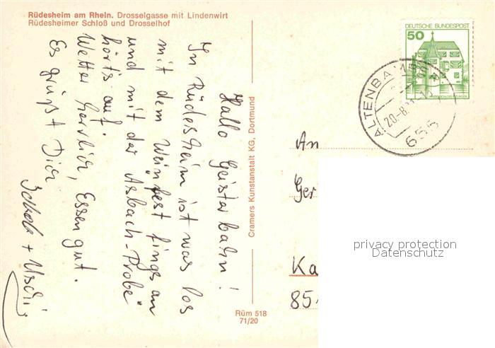 72776546 alte Postkarte Ruedesheim Rhein Schloss Drosselhof Lindenwirt postalisch gelaufen Erhaltung siehe scans [KathaD81] KatCode: 11110006439013