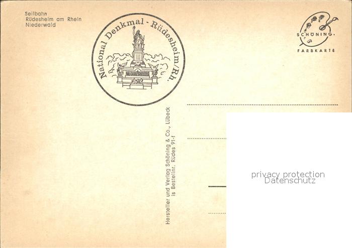 72496627 Ruedesheim Rhein Seilbahn zum Niederwald Denkmal postalisch nicht gelaufen Erhaltung siehe scans KatCode: 11110006439013