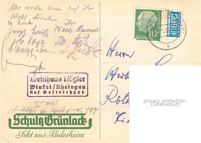 72850781 alte Postkarte Ruedesheim Rhein Sektkellerei Schultz Gruenlack Kuenstlerkarte postalisch gelaufen Erhaltung siehe scans [FriedD77] KatCode: 11110006439013