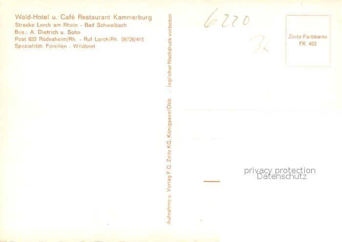 73673558 Ruedesheim Rhein Waldhotel Cafe Restaurant Kammerburg Terrasse postalisch nicht gelaufen Erhaltung siehe scans [FriedD77] KatCode: 11110006439013