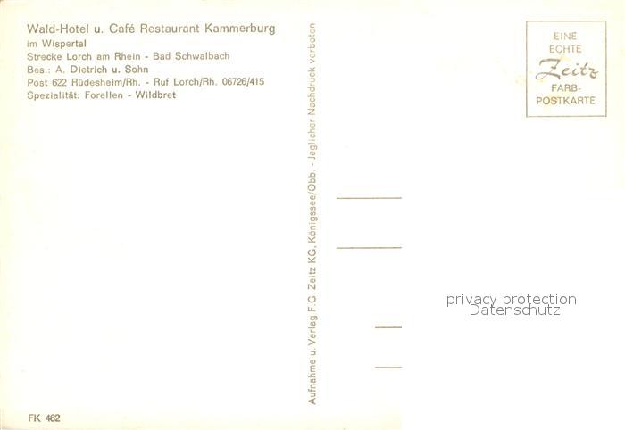 73642129 Ruedesheim Rhein Waldhotel Cafe Restaurant Kammerburg postalisch nicht gelaufen Erhaltung siehe scans [WerneD78] KatCode: 11110006439013