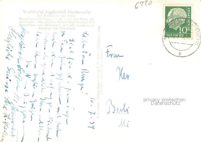 43362484 alte Postkarte Ruedesheim Rhein Waldhotel Jagdschloss Niederwald postalisch gelaufen Erhaltung siehe scans [WerneD78] KatCode: 11110006439013