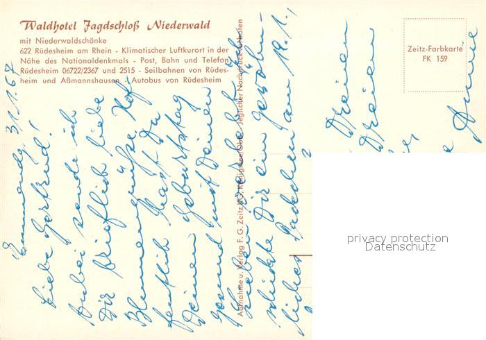 73086725 Ruedesheim Rhein Waldhotel Jagdschloss Niederwald postalisch nicht gelaufen Erhaltung siehe scans [NatalD47] KatCode: 11110006439013