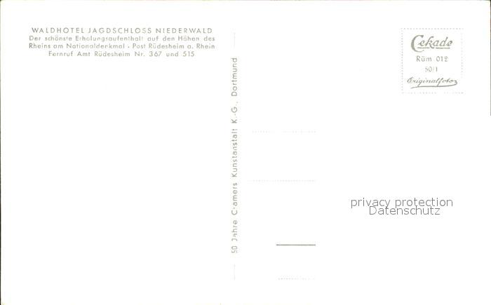 72094308 Ruedesheim Rhein Waldhotel Jagdschloss Niederwald postalisch nicht gelaufen Erhaltung siehe scans KatCode: 11110006439013