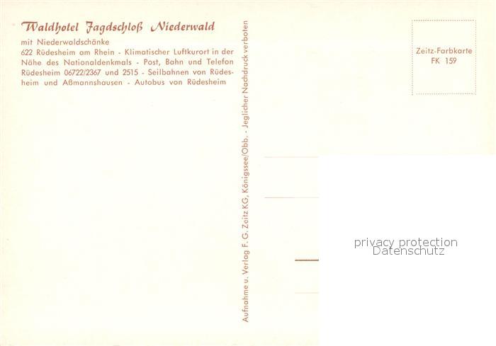 73251913 Ruedesheim Rhein Waldhotel Jagdschloss Niederwald postalisch nicht gelaufen Erhaltung siehe scans [KathaD81] KatCode: 11110006439013