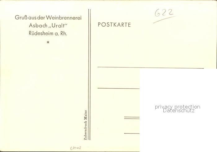 31715278 Ruedesheim Rhein Weinbrennerei Asbach Uralt postalisch nicht gelaufen Erhaltung siehe scans KatCode: 11110006439013