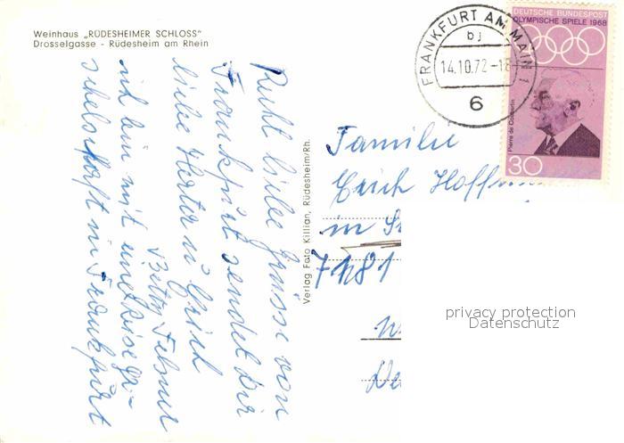 72773828 alte Postkarte Ruedesheim Rhein Weinhaus Ruedesheimer Schloss postalisch gelaufen Erhaltung siehe scans [AndreD76] KatCode: 11110006439013