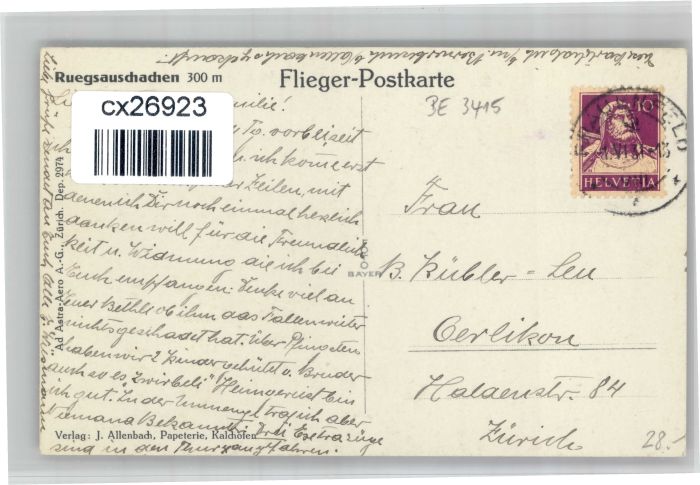 10849721 alte Postkarte Rueegsauschachen Fliegeraufnahme postalisch gelaufen KatCode: 11470060245844
