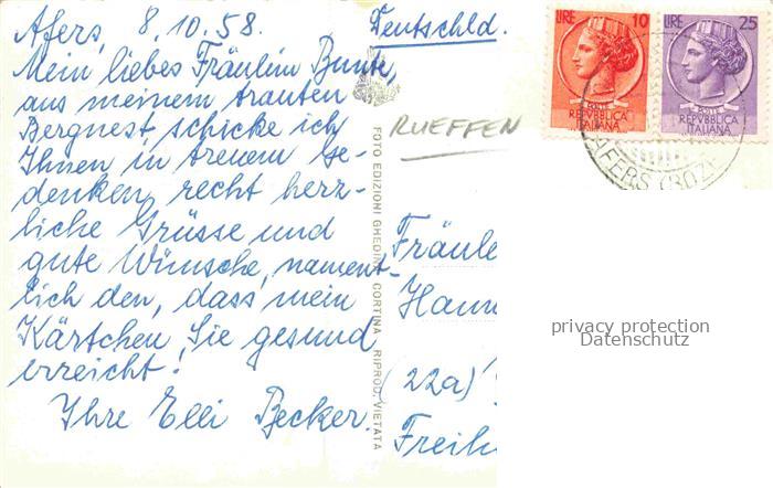 74153968 old postcard Rueffen I Coveli 2652m Geislergruppe Puez-Geisler Dolomiti Dolomiten IT Panorama Gruppo di Odle Geislergruppe Dolomiten postalisch gelaufen Erhaltung siehe scans [FriedD77] KatCode: 11240