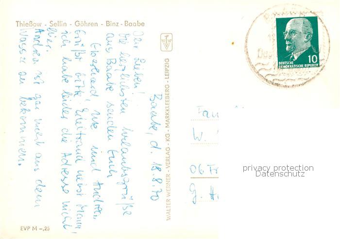 73835491 alte Postkarte Ruegen Insel Strandpartien Thiessow Sellin Goehren Binz Baabe postalisch gelaufen Erhaltung siehe scans [WerneD78] KatCode: 11110013061004